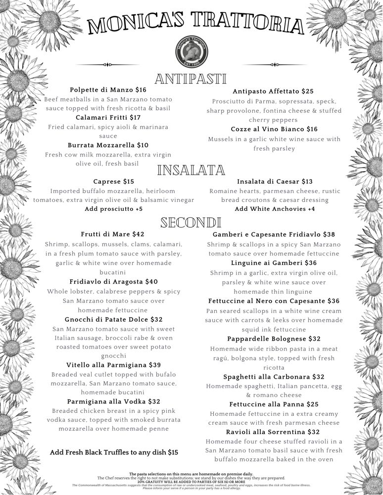 Welcome to Monica's Trattoria, a delightful Italian eatery nestled in the heart of Boston's North End. Here, the charm of rustic decor blends perfectly with a warm, intimate atmosphere, making it an ideal spot for a cozy dinner or a vibrant night out.