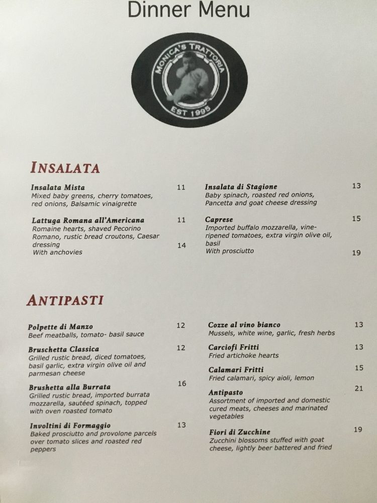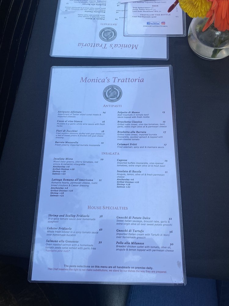 The menu at Monica’s features a mouthwatering array of dishes that celebrate traditional Italian cuisine. Highlights include the Vodka Chicken Parmigiana—renowned for its rich sauce and quality ingredients—and the Bruschetta Burrata, which ignites the palate with flavor. Guests rave about the veal gnocchi and signature meatballs, emphasizing generous portions and attentive service. Vegetarian options abound, catering to diverse tastes while maintaining authenticity.
