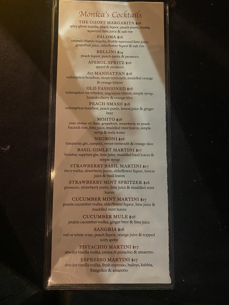 With outdoor seating, a full bar, and a range of payment options including cryptocurrency, Monica's invites everyone to experience its culinary delights. Be sure to stop by for happy hour specials or an intimate date night!